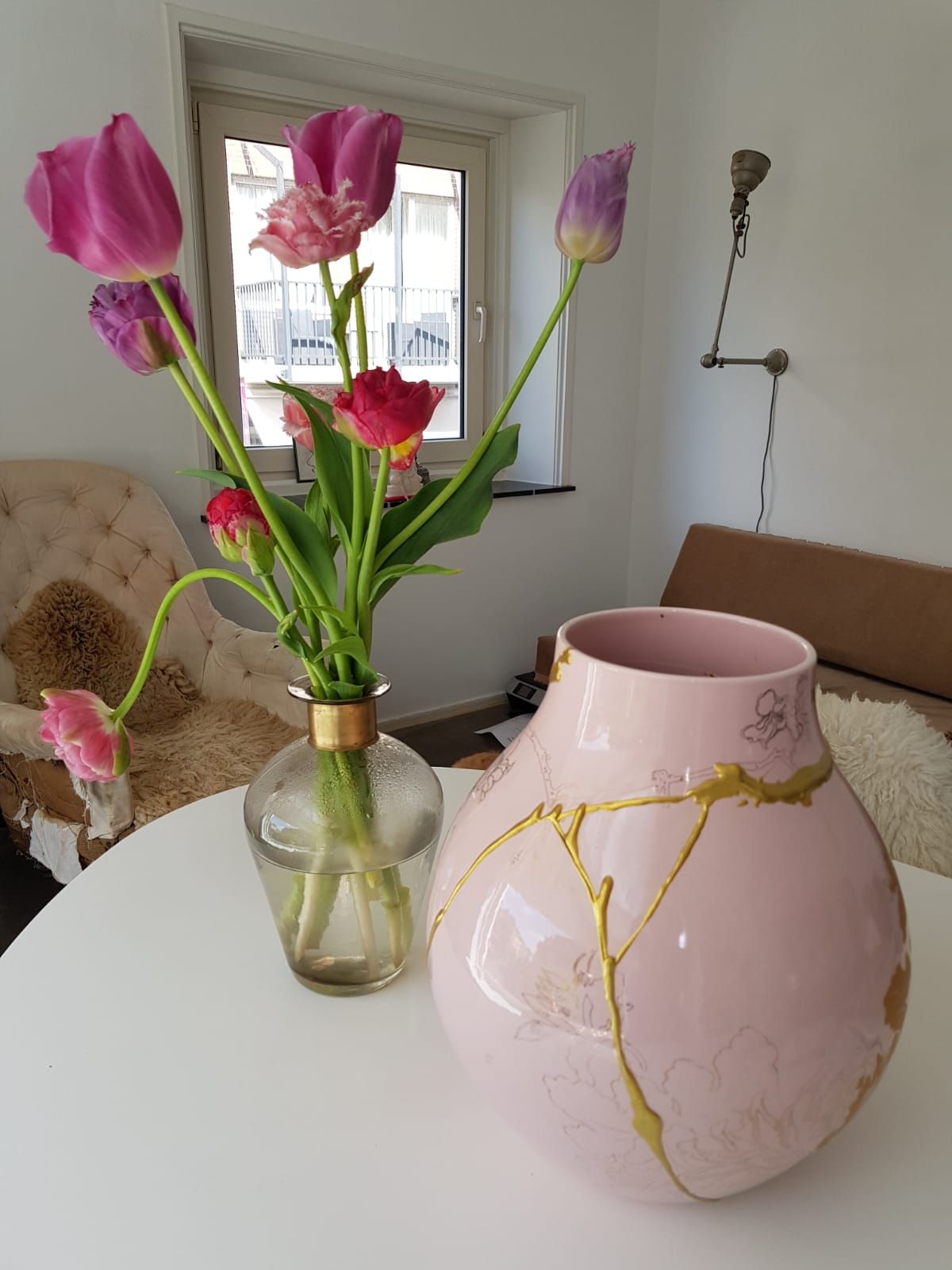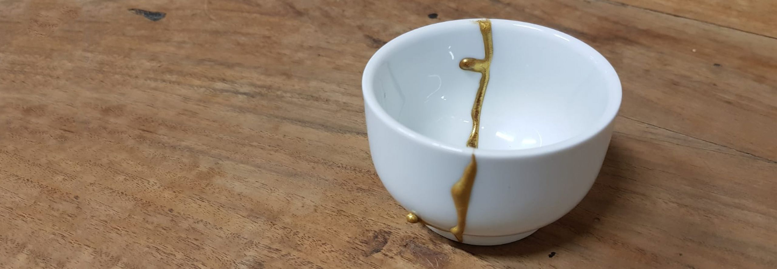 Kintsukuroi, (je spreekt uit: keen-tsoo-koo-roy) is een Japanse kunstvorm. Een kruik of een schaal die kapot is, wordt op een bijzondere manier weer gemaakt. Zo worden de gebroken stukken niet zomaar aan elkaar gelijmd, voor de reparatie wordt er goud of zilver gebruikt. Hierdoor wordt de kruik geformeerd tot een echt kunstwerk. De met goud gerepareerde scheuren maken de kruik unieker, mooier, waardevoller en geliefder dan ooit.